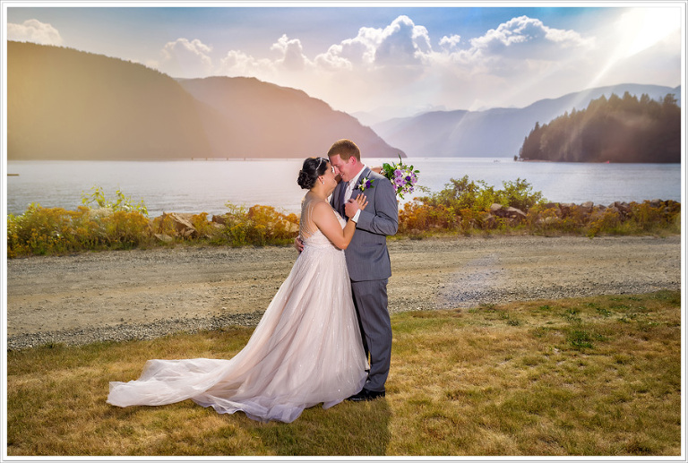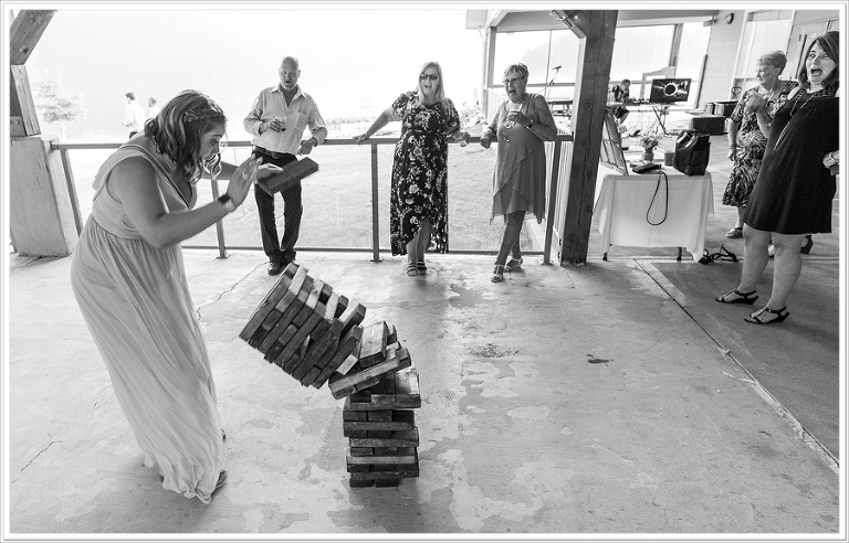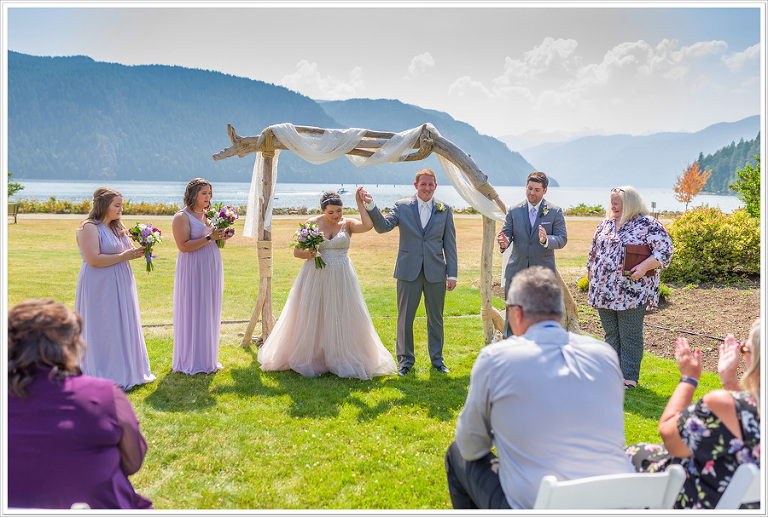 A scorching day up at gorgeous Comox Lake for Jessika and Kyle’s wedding, held at the Fish & Game club. Before though I arranged a first sight between the couple and bridal party photography thankfully in the shade! Then dinner, dancing, and party games!