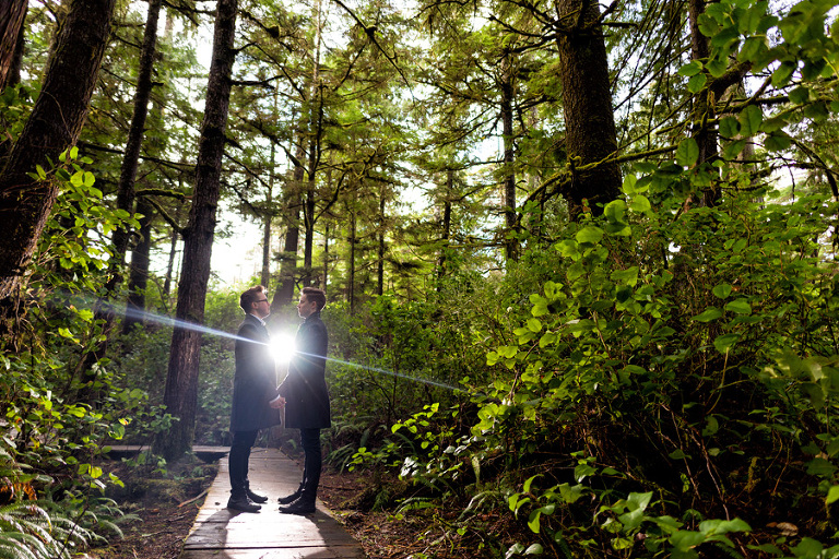 A couple of fellow Brits! Howard and John came from the UK to be married on Long Beach Lodge. Their wedding was on the beach, and then we took off for a photography session on the beach and in the woods.